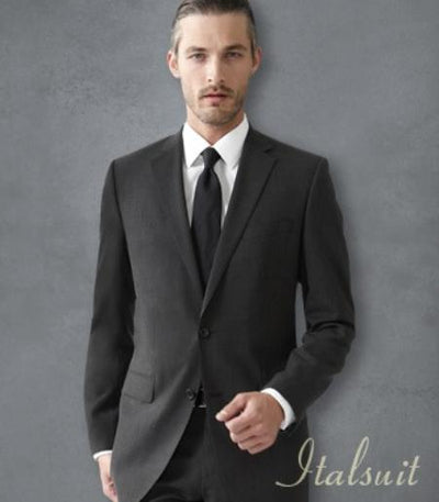 2 Button Notch Lapel Single Breasted Windowpane Pattern Modern Fit Flat Front Pants Besom Chest Pocket Two Flap Front Pocket Color: Charcoal