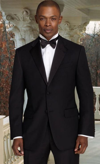 2 Button Peak Lapel Single Breasted Besom Chest Pocket Two Besom Pocket Color: Black