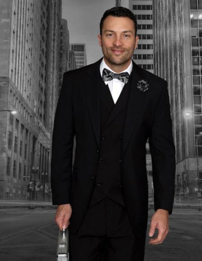 1 Button Shawl Lapel Single Breasted Double Breasted Vest Flat Front Pants Matching Bow Tie Besom Chest Pocket Two Flap Front Pocket Color: Black