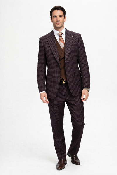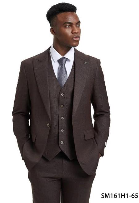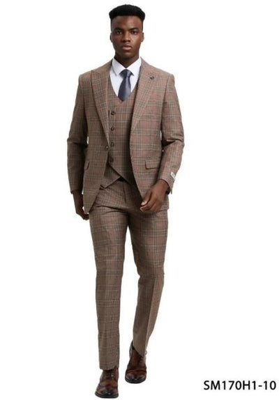 Brown Plaid Suit - Stacy Adams Men's Brown Square 3 Piece Suit Peak Lapel SM170H1-10 Color: Brown