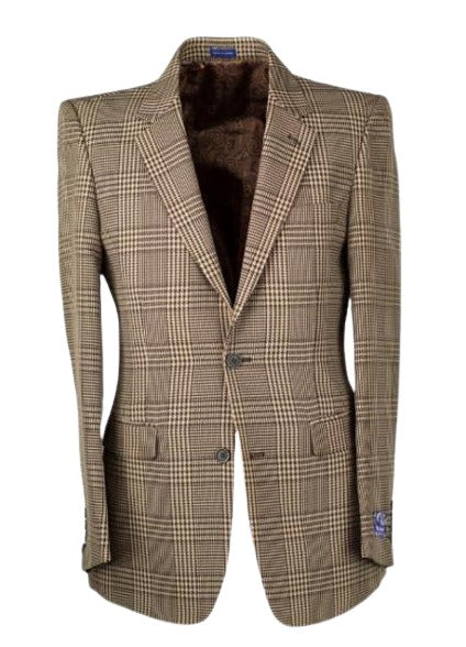2 Button Peak Label Single Breasted Windowpane Pattern One Chest Pocket Two Flap Front Pockets Color: Brown