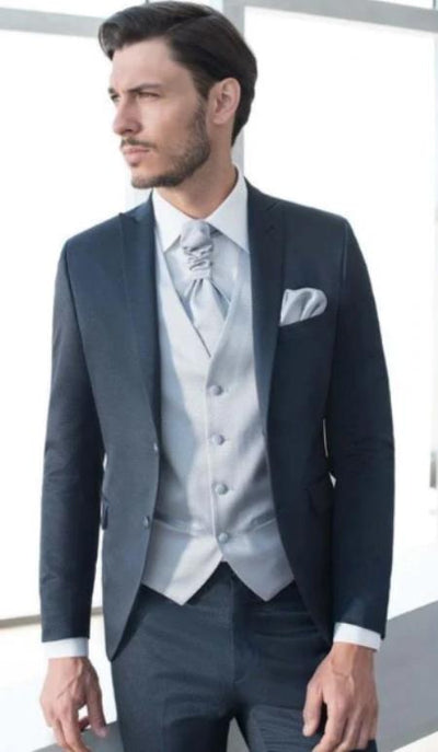 Turn heads at any event with the Rolya Blue Italian Wool 3-Piece Tuxedo, tailored in a Modern Fit that blends comfort with a sharp, contemporary si...
