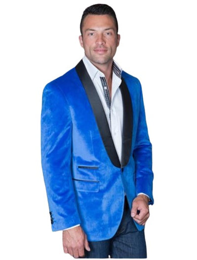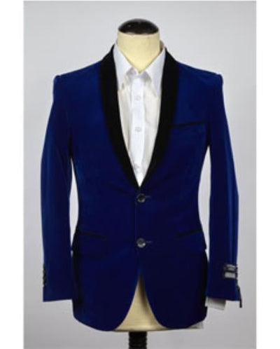 2 Button Shawl Lapel Cheap Priced Designer Fashion Dress Casual Blazer For Men On Sale Flap Pockets Slim Fit Color: Royal SKU#SM601