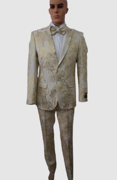 Prom 2025 Suits - Wedding Suit - Paisley Suit - Floral Suit + Matching Bowtie