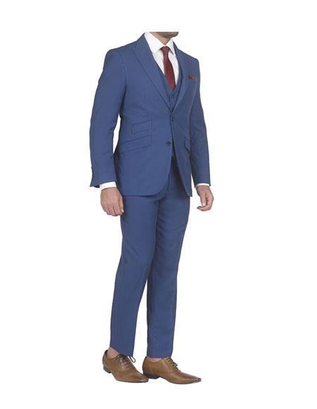 1 Button Peak Lapel Single Breasted Flat Front Pants One Chest Pocket Two Flap Front Pocket Color: Sapphire
