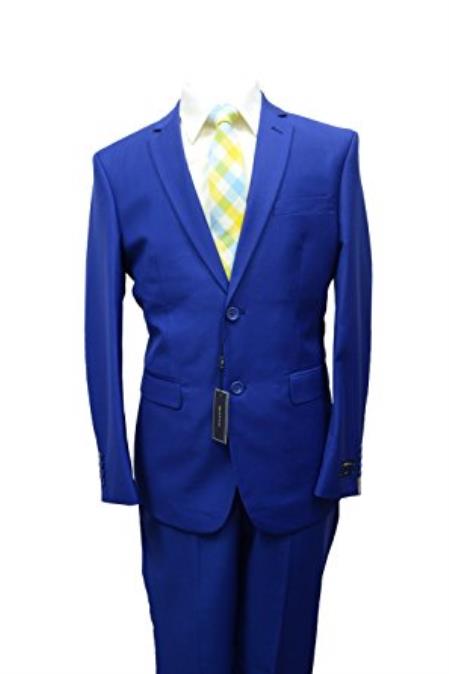 2 Button Notch Lapel Single Breasted Two Side Vent Flat Front Pants One Chest Pocket Two Flap Front Pocket Color: Sapphire