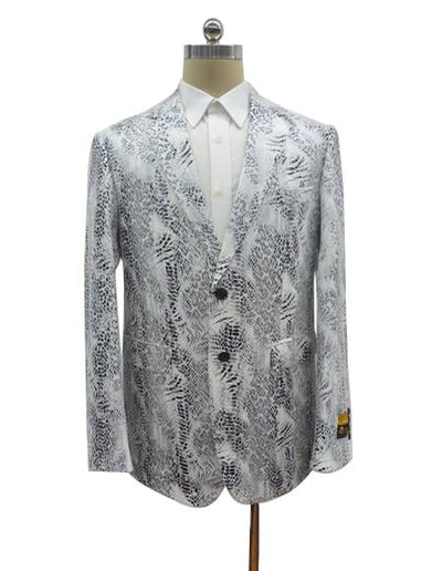 Two Button Single Breasted Notch Lapel One Chest Pocket Flap Front Pockets Cuff Link Color : White Snake Python Jacket men's Snakeskin Jacket For ...