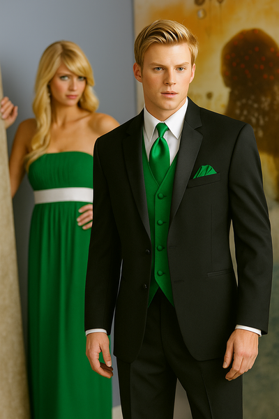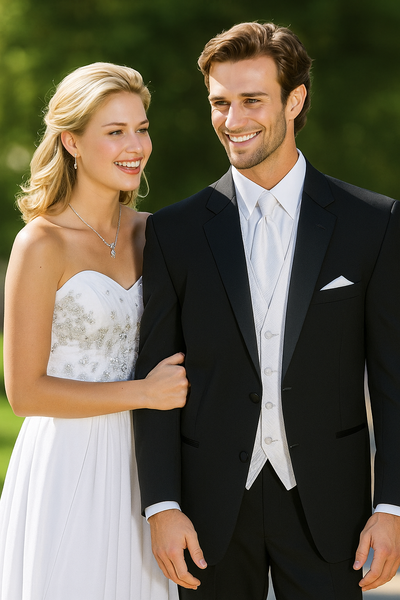 2 Button Single Breasted Shawl Lapel One Chest Pocket Besom Pockets Modern Fit Non-Vented Color: Black SKU#JA7517