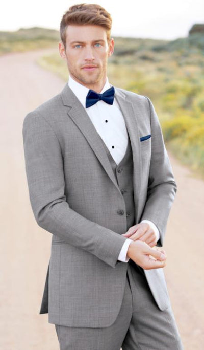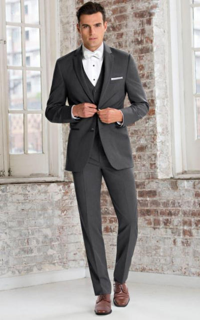 Two Button Single Breasted Notch Lapel One Chest Pocket Besom Pockets Slim Fit Side Vented Color: Medium Grey SKU#JA7508