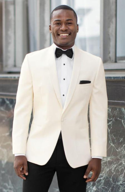 1 Button Single Breasted Shawl Lapel One Chest Pocket Besom Pockets Slim Fit Side Vented Material: Polyester Color: Ivory SKU#JA7514
