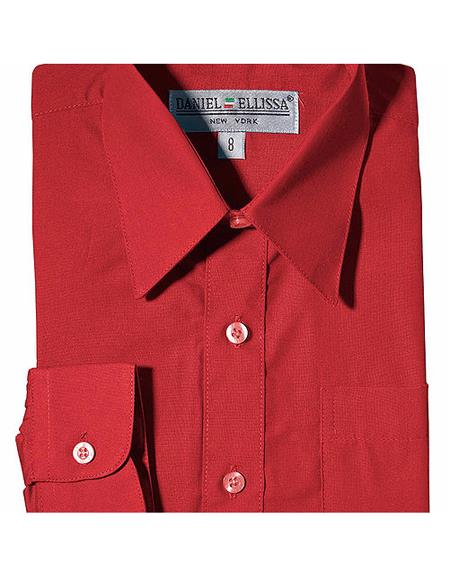 Clergy Style French Cuff Banded Collar Chest Pocket Hidden Buttons Cuff Links 65% Polyester / 35% Cotton Available color: Red
