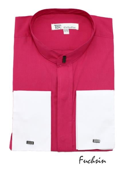 French Cuff Mandarin Collarless Hidden Buttons Material: Cotton Blends Cuff Style: French Cuff