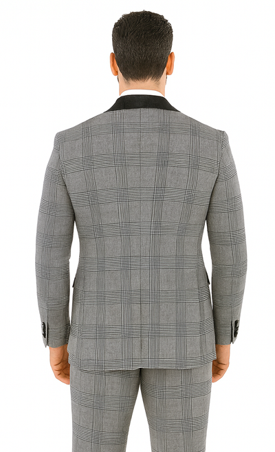 Achieve a refined and distinguished look with this Men’s Charcoal Plaid Double-Breasted Suit, designed for those who appreciate classic tailoring w...