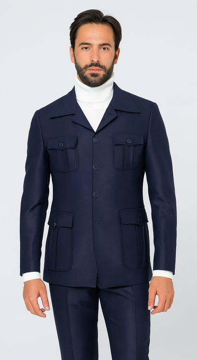 View full detailsThe Rossiman Men’s Navy Wool Suit with Baggy Pleated Pants is a sophisticated blend of heritage tailoring and modern versatility. Made from 100% pr...