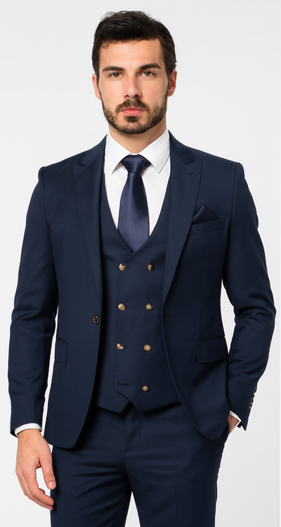View full detailsThe Rossi Man CYRUS RM116 Solid Navy Blue 3-Piece Suit is a refined menswear staple that blends timeless elegance with modern tailoring. Designed f...