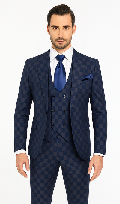 View full detailsThe Rossi Man MAX Collection RM1838 Slim Fit 3-Piece Suit in Navy Check is a modern expression of refined tailoring, designed for men who want to c...