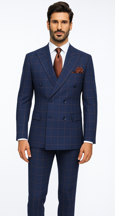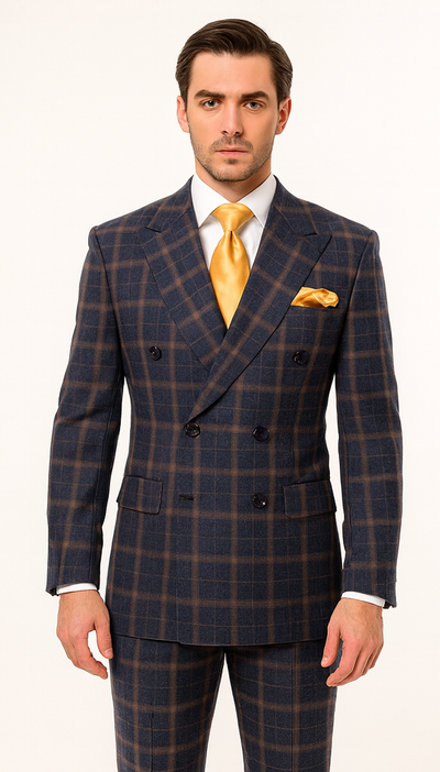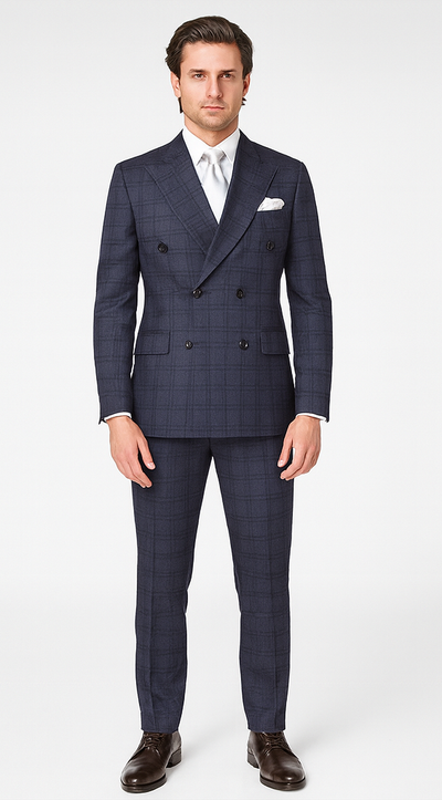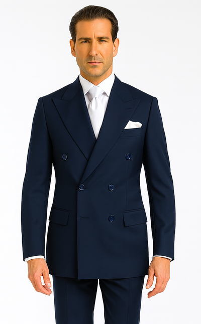 View full detailsRossiman Wool Super 150’s Double Breasted Suit with Baggy Pleated Pants – Solid Navy Upgrade your wardrobe with timeless sophistication in the Ross...
