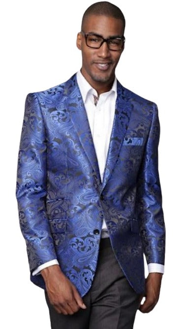 Mens Blazer - Paisley Sport Coat - Royal Prom 2025 Tuxedo Dinner Jacket Blazer