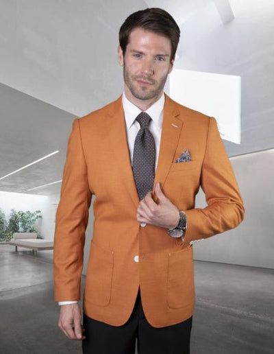 1 Button Notch Lapel Single Breasted Modern Fit One Chest Pocket Color: Rust