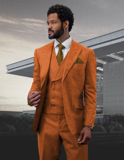 View full detailsTwo Button Single Breasted Peak Lapel One Chest Pocket Two Flap Front Pockets Color: Rust ~ Copper Light Brown SKU#JA2803