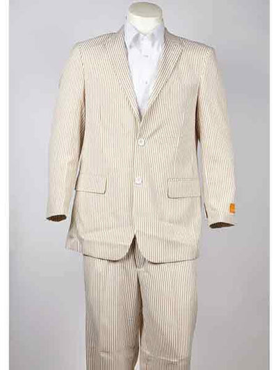 2 Button seersucker ~ sear sucker Suit Notch Lapel Flap Front Pockets Jacket One Chest Pocket Color: Beige SKU#SM998