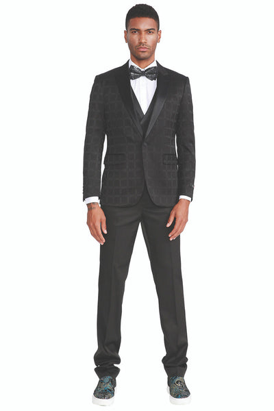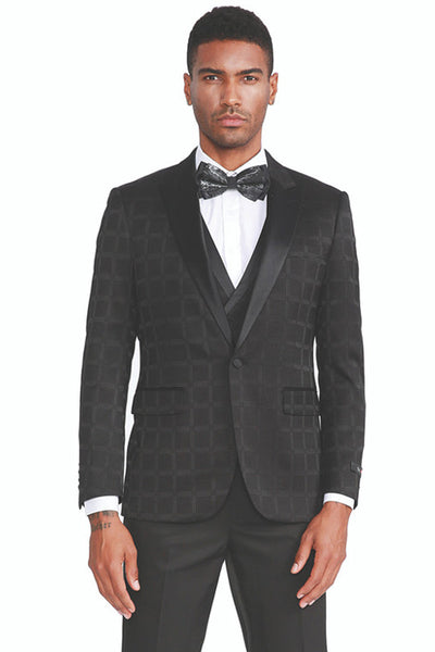 View full detailsLooking for a sharp, modern tuxedo? Tazzio Suits' men's one button peak lapel tuxedo in black plaid offers just that. It’s crafted from a refined f...