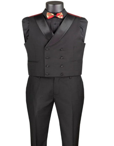 1 Button Shawl Label Single Breasted Modern Fit Double Breasted Lapel Vest Matching Pants One Chest Pocket Two Flap Front Pockets Color: Red