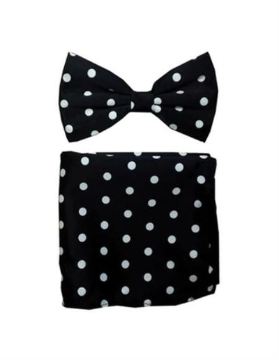 Bow Tie Black & White Polka Dot Color Plus Matching Hanky Hand Made Silk Imported Color: Black and White Polka