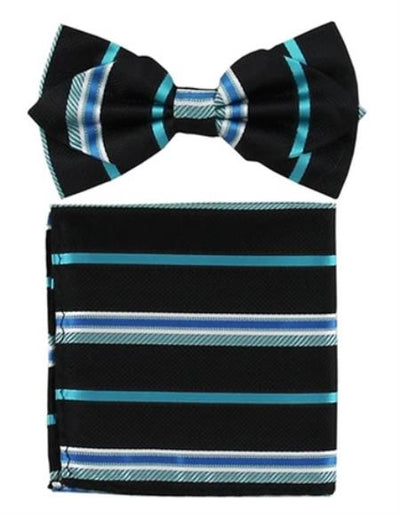 Bowtie Hand Made Imported Color: Black and Teal Stripe