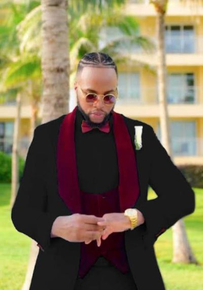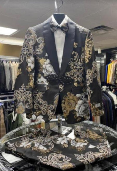 1 Buttons Single Breasted Shawl Lapel Paisly Pattern One Chest Pocket Two Flap Front Pockets Color: Black