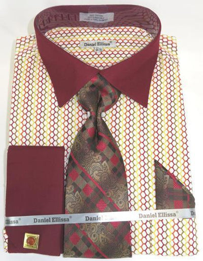 View full detailsWhite Collared French Cuffed Burgundy ~ Wine ~ Maroon Color Woven Design Shirt With Tie/Hanky/Cufflink Set Men's Dress Shirt Spread Collar Woven De...