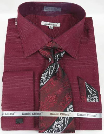 View full detailsMen's Burgundy Two Tone French Cuff Dress Shirt Set Two Tone French Cuff Dress Shirt Tie Hanky Cuff Links 100% Cotton Color: Burgundy