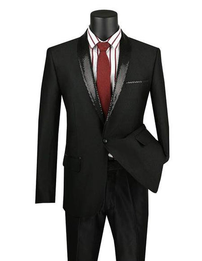 One Button Single Breasted Shawl Lapel One Chest Pocket Flap Front Pockets Slim Fit Material : Wool Feel Fabric Color : Black SKU#VT28