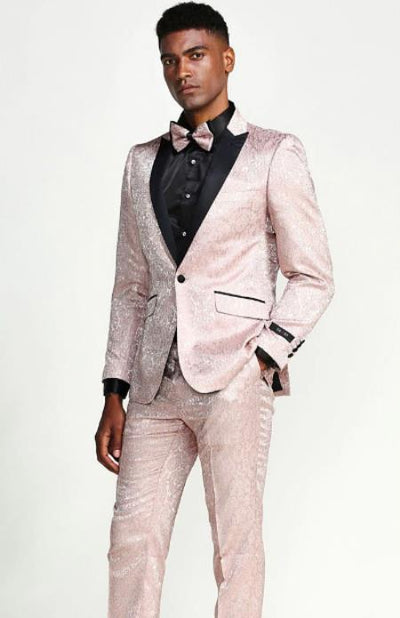 1 Button Peak Lapel Single Breasted Slim Fit Side vents Fully Lined One Chest Pocket Two Flap Front Pocket Colour: Blush SKU#JA56568