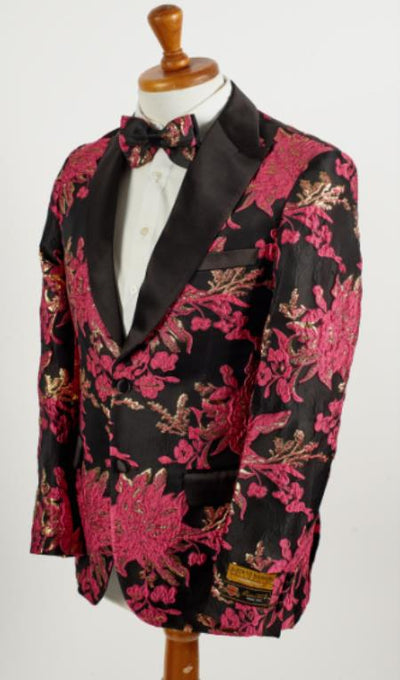 2 Button Single Breasted Peak Lapel One Chest Pocket Two Flap Front Pocket Color: Red ~ Black SKU#JA54180