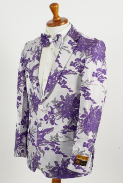 2 Button Single Breasted Peak Lapel One Chest Pocket Two Flap Front Pocket Color: Purple ~ White SKU#JA54187