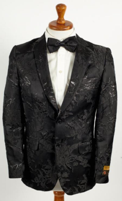2 Button Single Breasted Peak Lapel One Chest Pocket Two Flap Front Pocket Color: Black ~ Gold SKU#JA54186