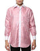 Pink White Shiny Satin Floral Spread Collar Dress Shirt