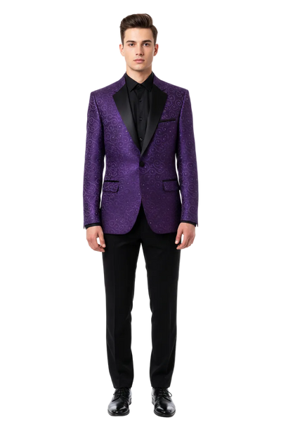 2 Buttons Single Breasted Notch Lapel Gold Buttons Full side vents One Chest Pocket Two Flap Front Pockets Color: Purple SKU#JA4958