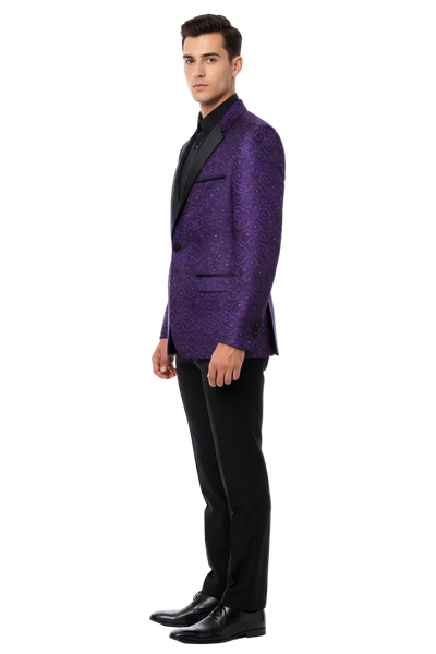 One Button Closure Single Breasted Shawl Lapel Two Besom Pockets One Chest Pocket Floral Pattern Color: Purple SKU#JA17750