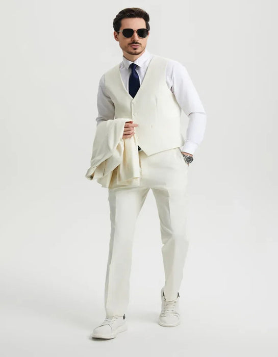 Men's Two Button Vested Stacy Adams Basic Designer Ivory Off White Suit