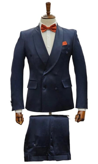 6 Button Shawl Label Double Breasted Slim Fit One Chest Pocket Two Flap Front Pockets Color: Navy