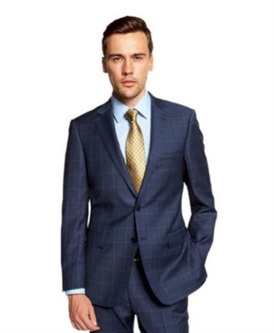 View full detailsOne Button Closure Single Breasted Notch Lapel Window Pane Pattern Two Flap Front Pockets One Chest Pocket Color: Indigo ~ Cobalt Blue SKU#K53433