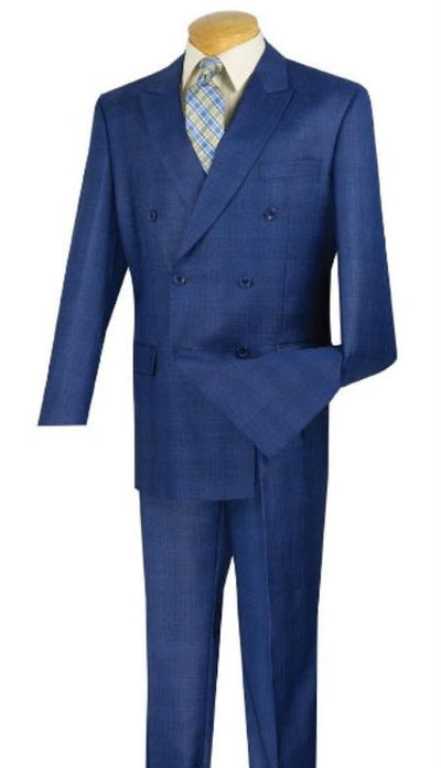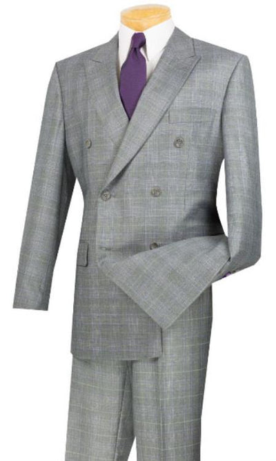 View full detailsVinci Men's 2 Piece Double Breasted Suit - Glen Plaid Standard Length 6 Button Jacket Peak Lapel Besom Pocket Flap Pockets Side Vents Pleated Pants...