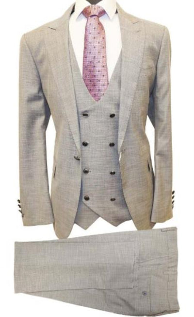 View full detailsModel Max Peak Lapel One Button Slim Fit Double Breasted Scoop Vest Flap Pockets on Jacket Flat Front Slim Pant Available in Ivory