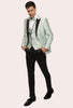 1 Button Single Breasted Peak Label Center Vent Matching Bow Tie Two Flat Front Pockets One Chest Pocket Color: Mint Green SKU#JA55011