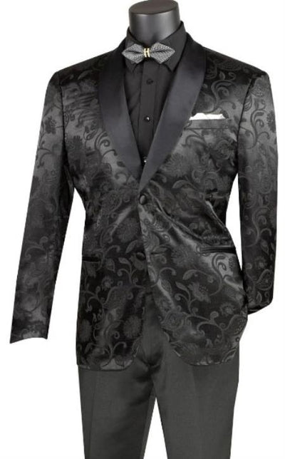 2 Button Single Breasted Shawl Lapel Bowtie Included Paisley Pattern One Chest Pocket Besom Pockets Color: Black