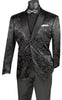 Slim Cut Length 2 Button Jacket Sequinned Floral Pattern Chest Pocket Side Pockets Side Vents Velvet Jacket Two Flap Front Pockets Color: Black