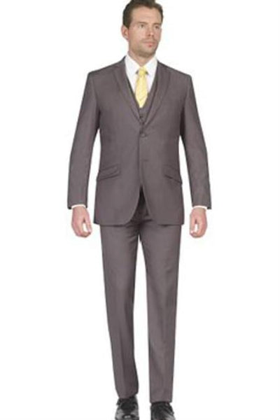 Two Button Suit Slim Fit Notched Lapel 3 Piece Welt Chest Pocket Double Vent Flap Front Pockets Color: Mid Grey SKU#SM1299