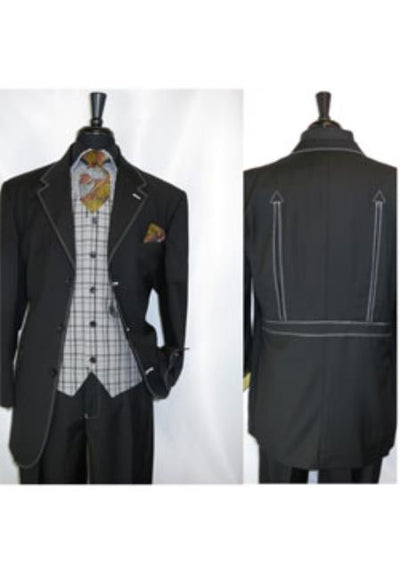 3 Button Suit Jacket Notch Lapel White Stitch Trim 2 Flap pockets SKU#SS-95